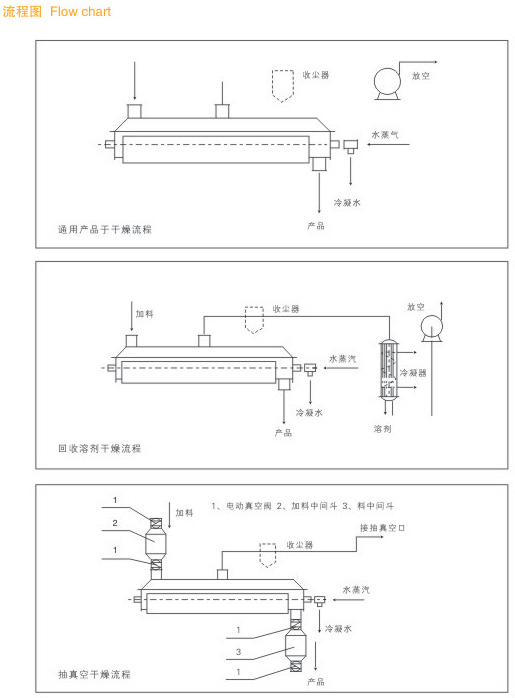 ● 處理物料范圍廣:使用不同熱介質,既可處理熱敏性物料,又可處理需高溫處理的物料。常用介質有:水蒸汽、導熱油、熱水、冷卻水等。既可連續(xù)操作也可間歇操作,可在很多領域應用。